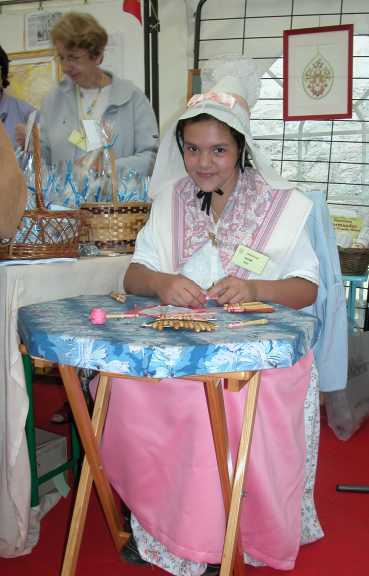 | Une idée originale de santons dentellières représentant les différentes dentelles de Normandie. | Et sur l'estrade, l'impressionnante collection de poupons présentés par Jean-Pierre Rius et son épouse. Mr et Mme Rius ont aussi installé la scène de la dentellière qui était visible à l'exposition de la ferme, (vous la verrez quelques pages plus loin) et ils participent à une exposition de dentelles mise en place jusqu'à fin août au château de Betteville (à Pont L'Evêque). |