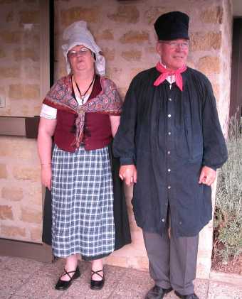 | Dès l'entrée, quelques normands et normandes recvevaient les convives. Mr et Mme Rius. | Deux couples et quelques compères chantaient et dansaient pour souhaiter la bienvenue. Mr et Mme Rivognac. |