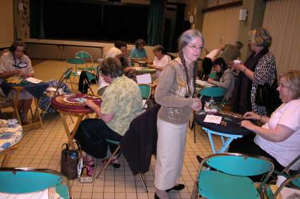 | La tapisserie de Bayeux intéresse particulièrement nos amies de Bosnie et Daniel doit tout traduire avec les mains. | Les membres du CA de DBCC sont encore là pour aider les débutantes. |