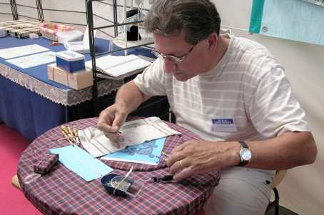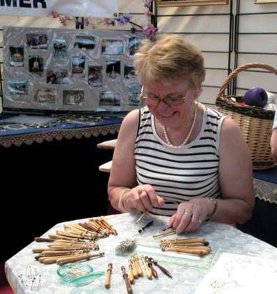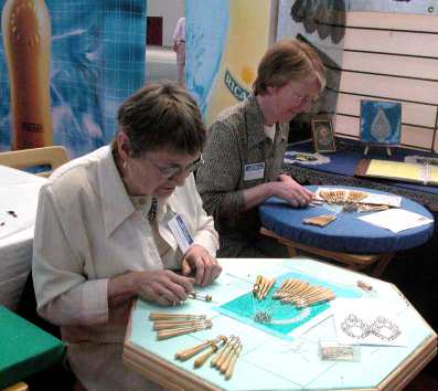admirer chez nous des tables remplies de dentelles faites par les dentellières de l'association DBCC. |