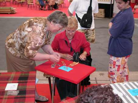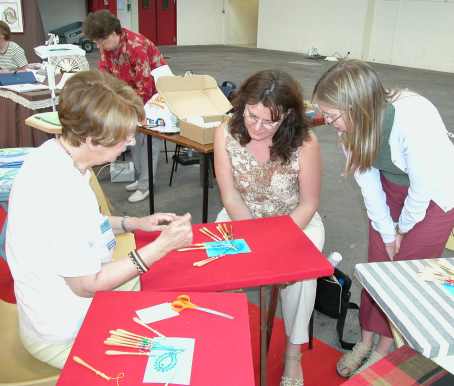 | Claudette coupe les fils ... le poisson est terminé | tandis que Geneviève montrait à un troisième groupe. |