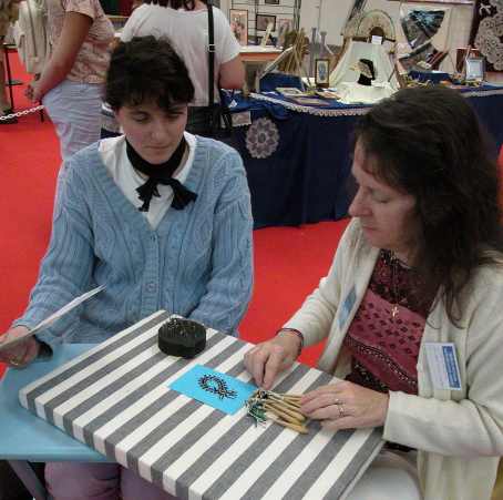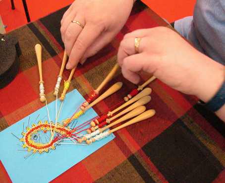 | Christiane prenait en main un groupe de débutantes. -"Regardez, c'est simple : On croise - on tourne... et on pique l'épingle ! " | "Moi, j'ai tout compris, ça marche tout seul ! |