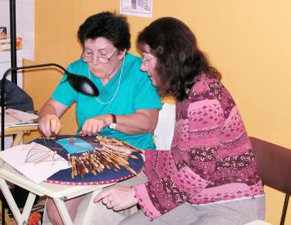 donne quelques explications techniques pour permettre à chaque dentellière de travailler